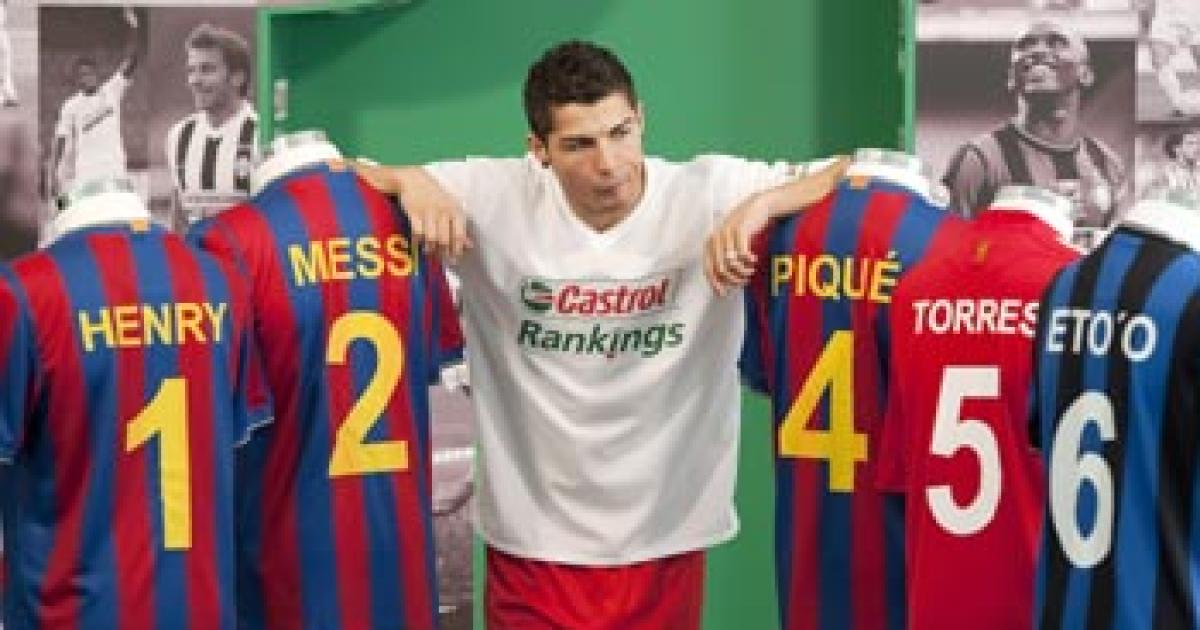 Image: Cristiano Ronaldo with jerseys bearing the names of the top six players in the Castrol rankings