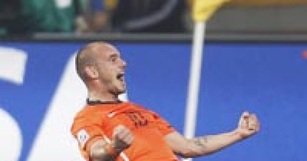 With Rafael van der Vaart beside him, Sneijder moved forward and restored the lead 20 minutes from time with a deflected shot, his fifth of the tournament which levelled him with Spain's David Villa.